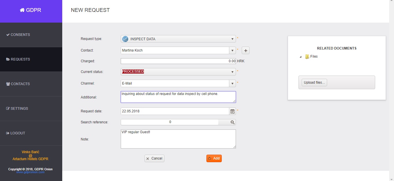 Automate your GDPR request by using our request manager. You can forward an e-mail to your dedicated GDPR account on our servers and it will automatically start new GDPR request. Of course, all related e-mail correspondence will be automatically associated with this GDPR request so you can track everything!